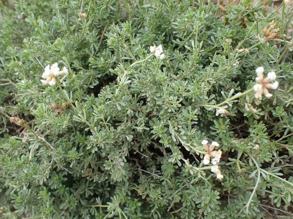 Lotus dorycnium is a herbaceous perennial subshrub with woody base, known for its ascending or procumbent hairy stems and silky-hairy leaves composed of 4-5 leaflets.
