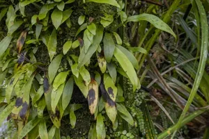Lance Fern (Loxogramme Dictyopteris) is a perennial fern in the Polypodiaceae family with moderate care difficulty. It requires moderate watering and partial shade or full shade or dappled_shade light in USDA hardiness zones 8-11. This plant is safe for cats and dogs. It can be grown indoors.