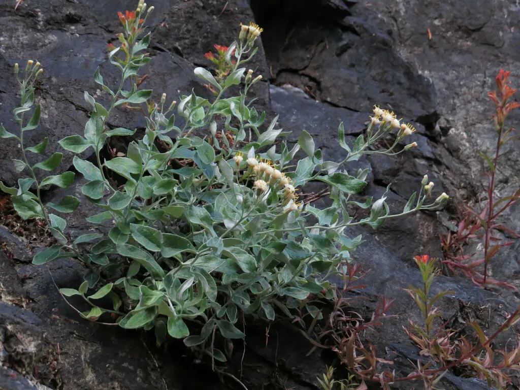 Luina hypoleuca, known as Littleleaf Silverback, is a perennial plant species in the Asteraceae family characterized by its white woolly stems and elliptic leaves with a white underside.