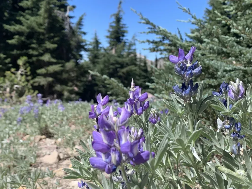 A perennial lupine with silvery, hairy stems and blue to violet flowers.