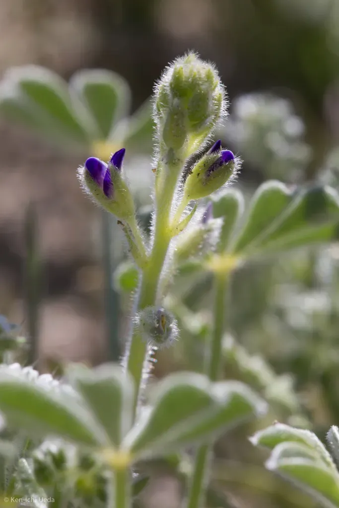 Lupinus shockleyi is an annual herb native to California and western North America, characterized by its fine white hairs and purple-blue flowers with yellow banner spots.