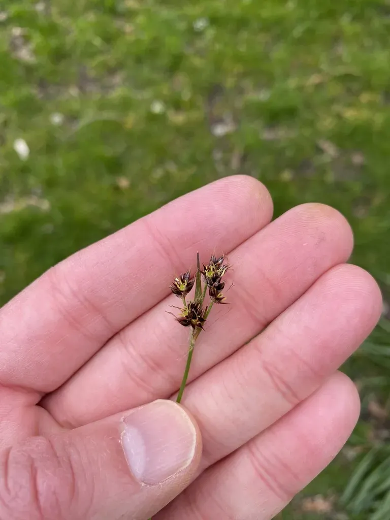 Luzula campestris is a grass-like perennial plant commonly found in Europe and occasionally in North America, characterized by broad, dark green leaves edged with fine silky hairs and distinctive dark brown flower and seed heads.