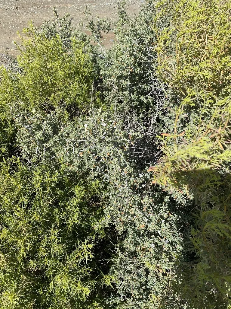 Lycium cinereum is a small, stiff, very spiny shrub with intricately branching stems, native to southern Africa.