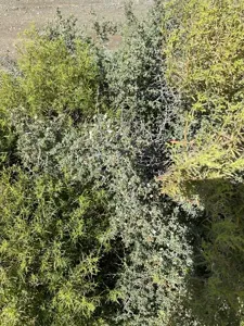 Brownstem Honeythorn (Lycium Cinereum) is a perennial shrub in the Solanaceae family with moderate care difficulty. It requires low watering and full sun or partial shade light in USDA hardiness zones 9-11. This plant is toxic to cats and dogs — keep it out of reach of pets.