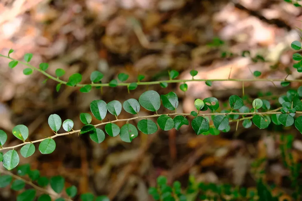 Cockspur Thorn (Maclura Cochinchinensis) is a perennial vine in the Moraceae family with moderate care difficulty. It requires moderate watering and full sun or partial shade light in USDA hardiness zones 9-11. This plant is safe for cats and dogs.