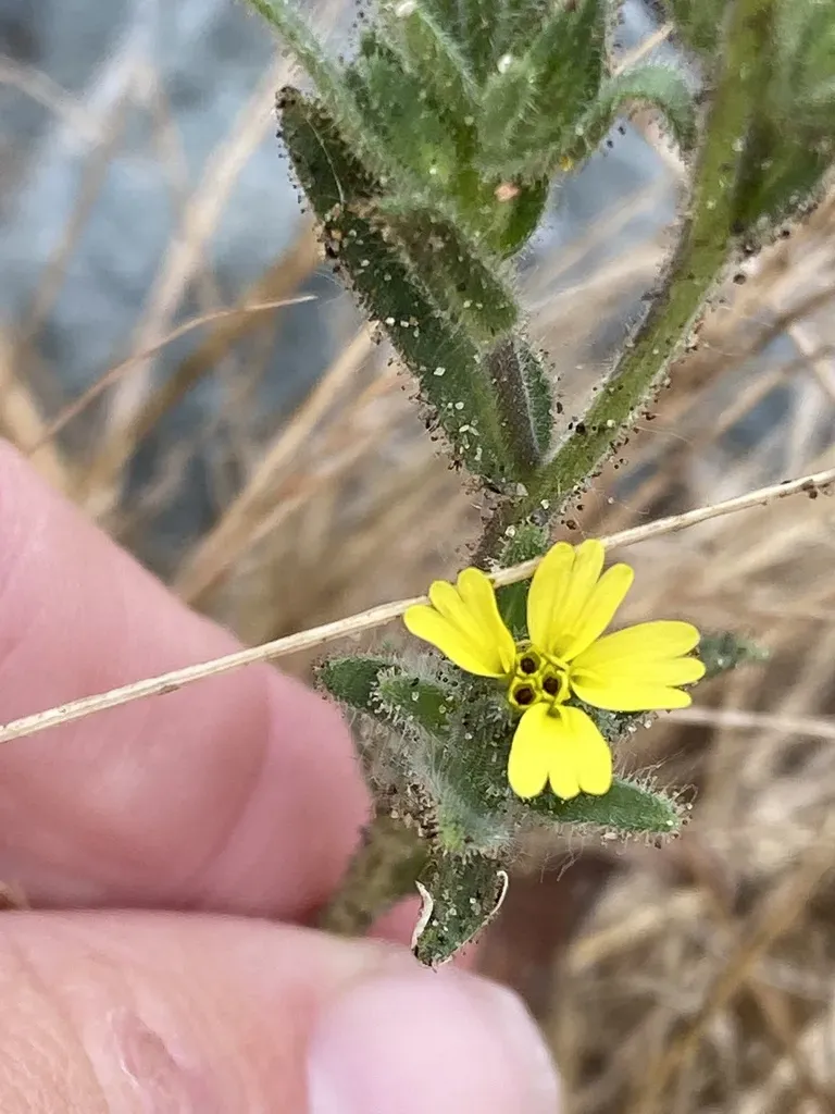 Madia sativa is an annual herbaceous plant in the Asteraceae family, native to the Americas, known for its sticky, aromatic foliage and yellow daisy-like flowers.