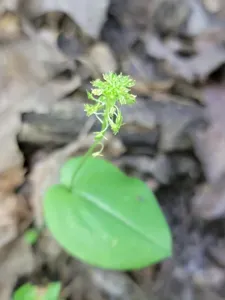 Malaxis unifolia is a small orchid species characterized by a single leaf and a raceme of tiny green flowers.