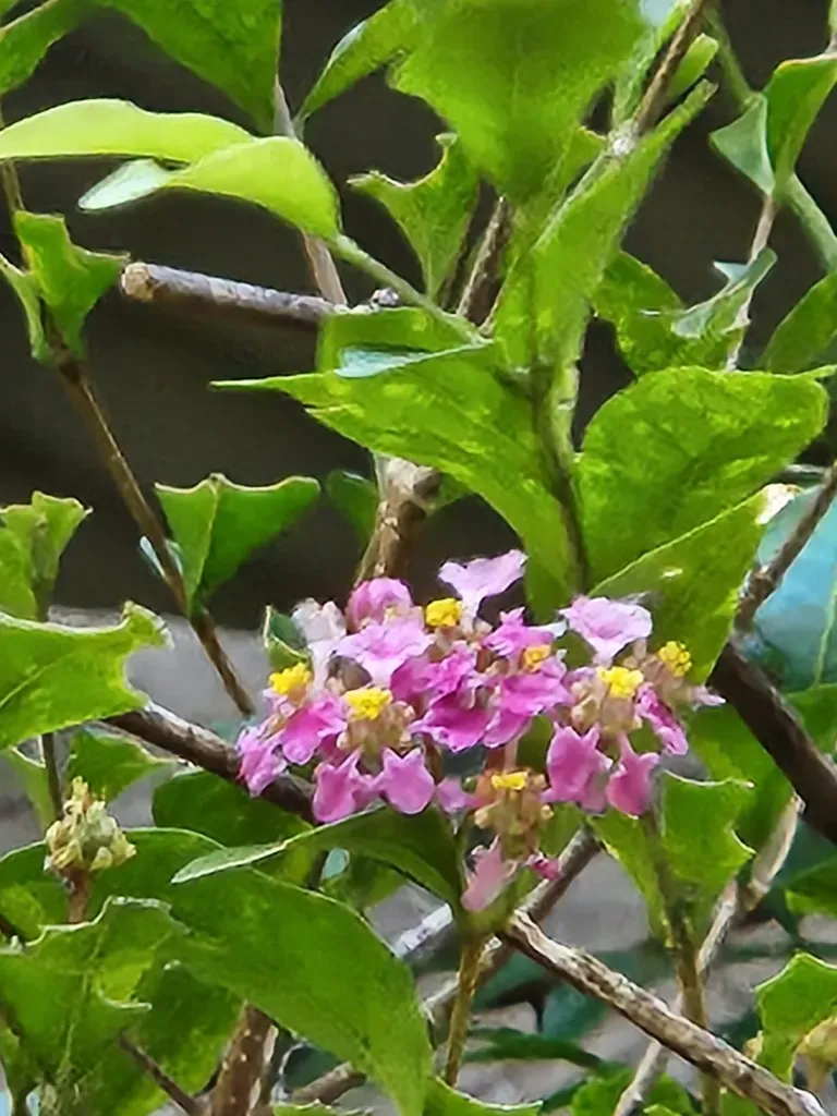 Malpighia glabra is a tropical, evergreen shrub or small tree known for its spreading, drooping branches and small pink flowers.