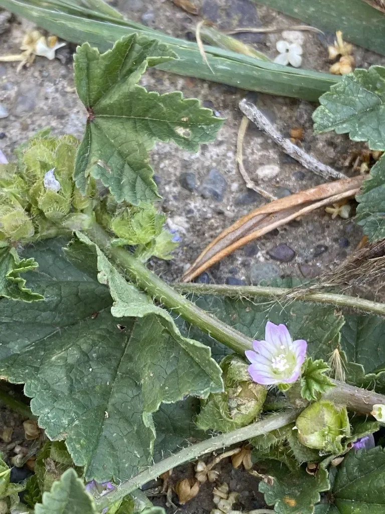 Malva nicaeensis is a species of flowering plant in the mallow family known for its erect or ascending habit and pinkish flowers.