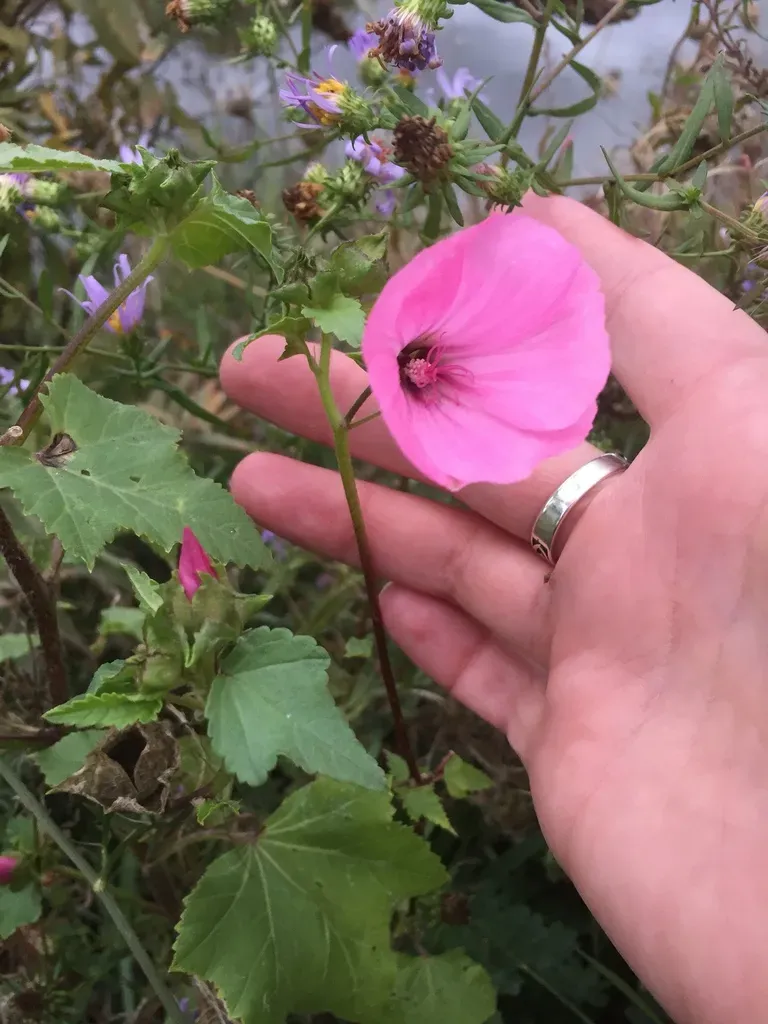 Malva trimestris is an annual herbaceous plant growing up to 1.2 meters tall, known for its attractive shallow funnel-shaped flowers in shades of white, pink, and purple.