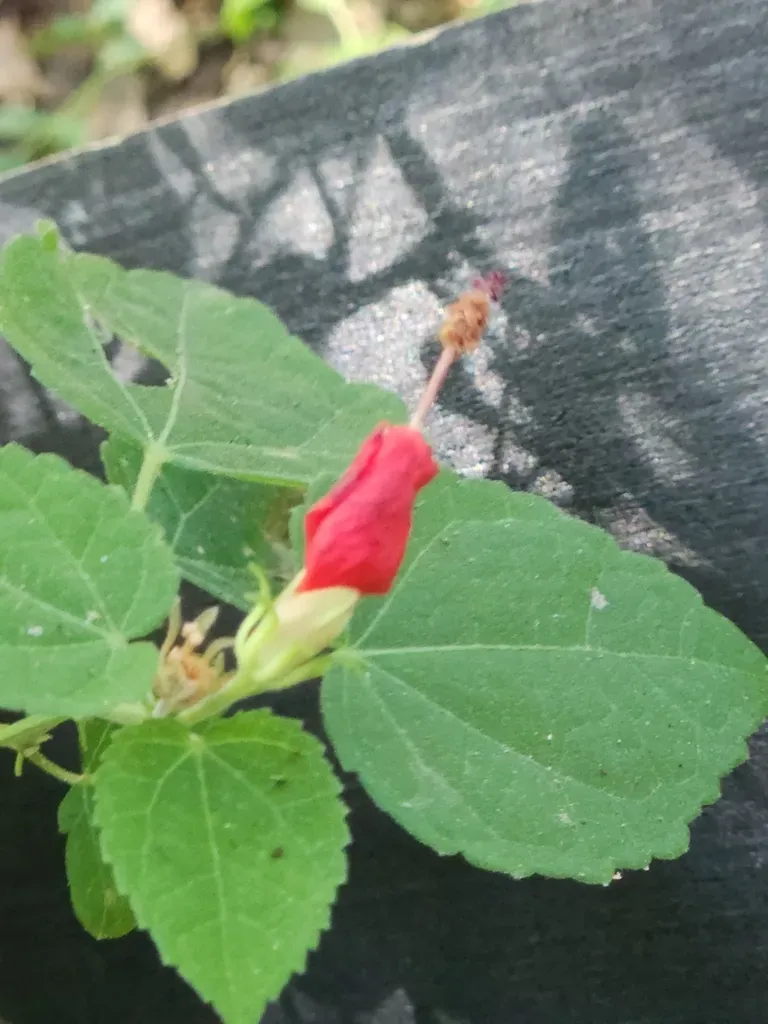 Malvaviscus arboreus is a perennial shrub native to the Americas, known for its bright red, hibiscus-like flowers that remain partially closed, giving rise to the name 'sleeping hibiscus' or 'Turk's cap.'