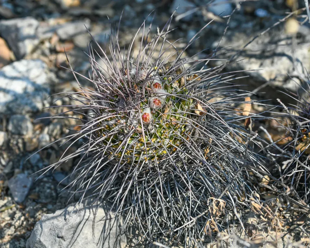 Mammillaria carnea is a small cactus species native to Mexico, known for its dense spines and pinkish flowers.