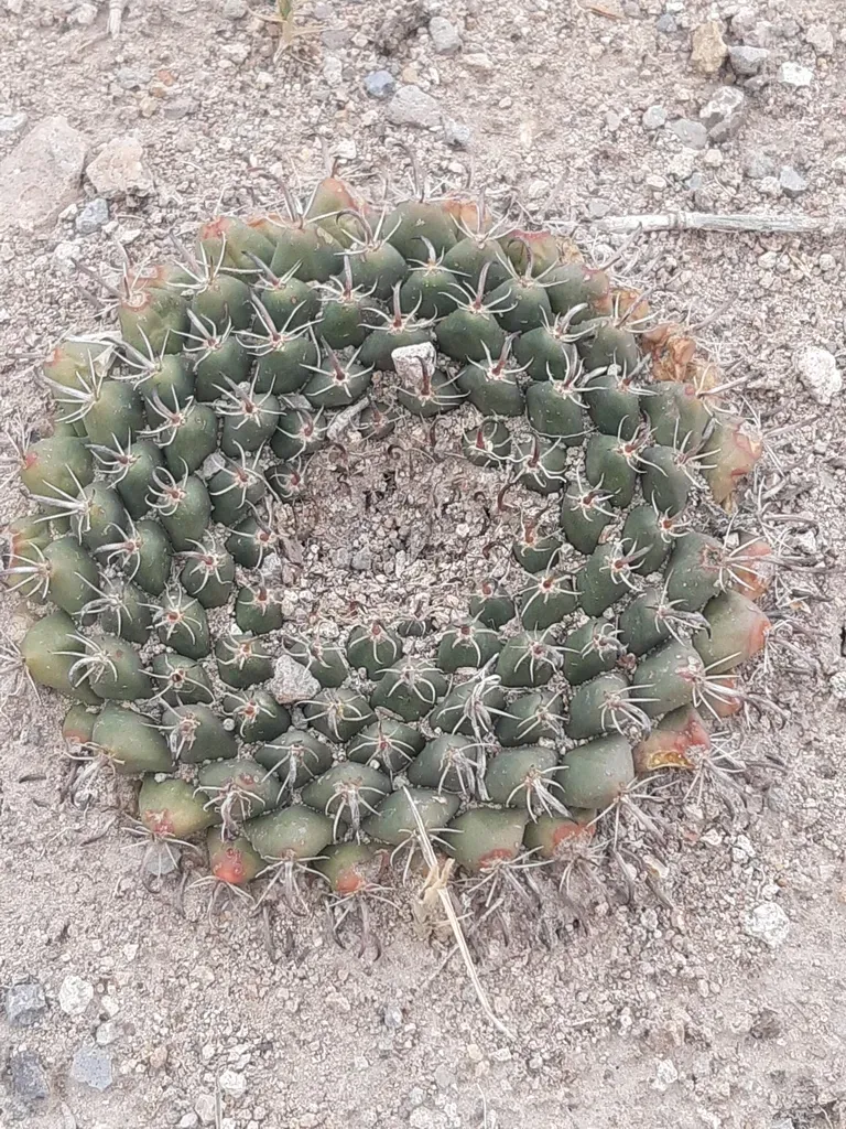 Mammillaria uncinata is a small, spherical cactus native to Mexico, known for its hooked spines and clusters of pink to purple flowers.