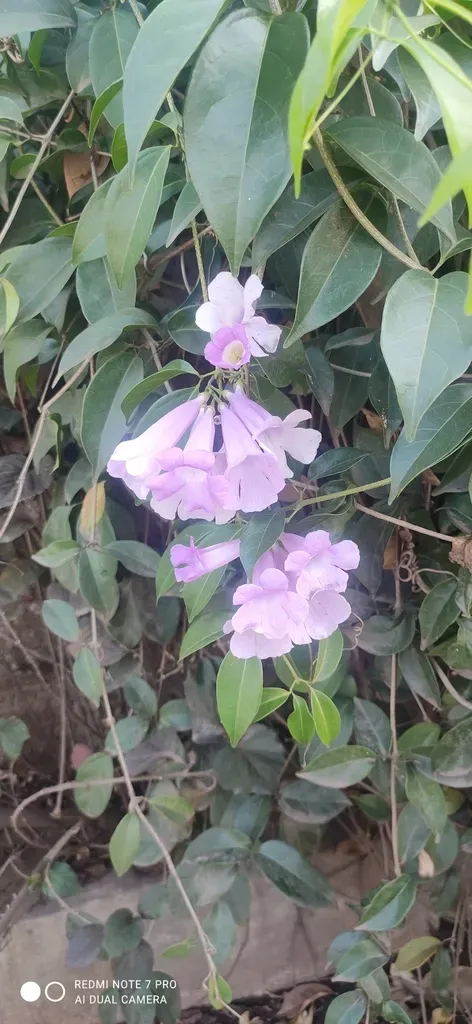 Mansoa alliacea is a tropical evergreen climbing vine known for its garlic-scented leaves and attractive trumpet-shaped flowers.