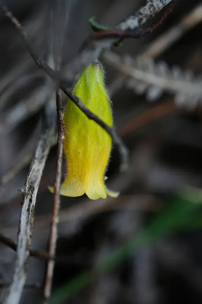 Marianthus bignoniaceus is a small, evergreen shrub with a dense, spreading habit, known commonly as the Orange Bell-Climber.