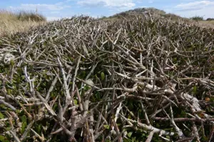 Porcupine Shrub (Melicytus Alpinus) is a perennial shrub in the Violaceae family with easy care difficulty. It requires moderate watering and full sun or partial shade light in USDA hardiness zones 7-9. This plant is safe for cats and dogs.