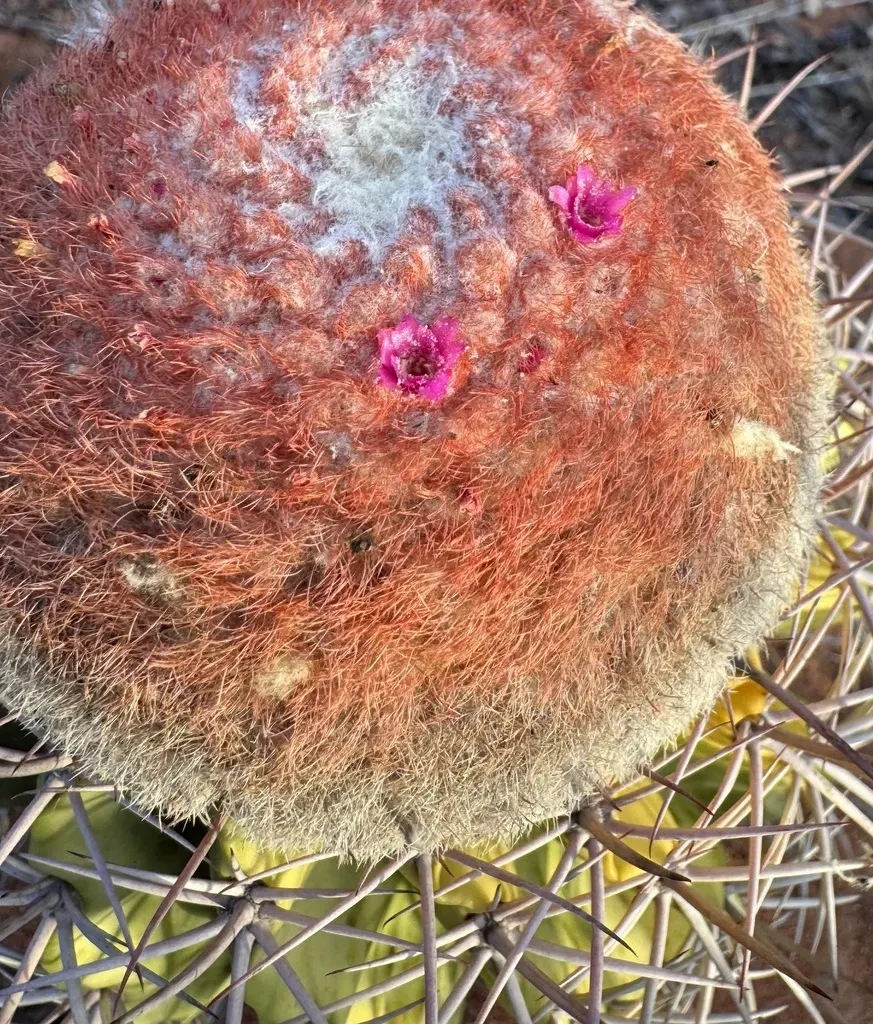 Melocactus zehntneri is a globular, spiny, evergreen cactus characterized by its distinctive cephalium and large size.