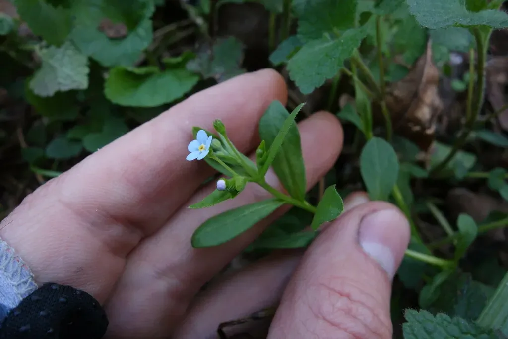 Scorpioid Forget-me-not (Memoremea Scorpioides) is a perennial herb in the Boraginaceae family with moderate care difficulty. It requires moderate watering and partial shade or dappled_shade light in USDA hardiness zones 6-8. This plant is safe for cats and dogs. It can be grown indoors.