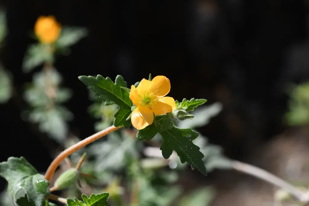 Mentzelia adhaerens is a herbaceous perennial plant native to arid regions of California and Mexico, known for its bright yellow flowers and sticky leaves.