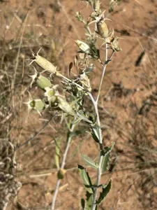 Mentzelia nuda is a perennial herbaceous plant native to the Great Plains and western United States, known for its distinctive white flowers and sticky barbed hairs on its leaves and stems.