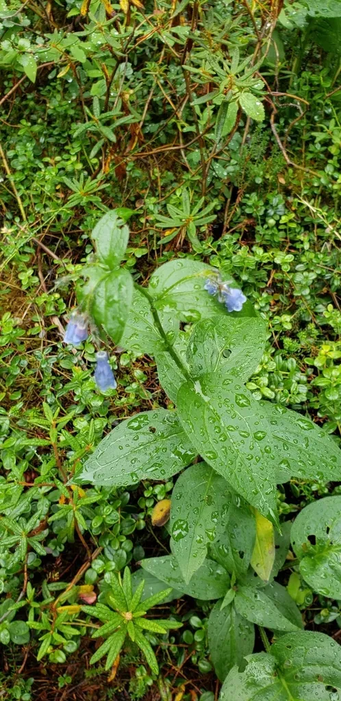 Tall Lungwort (Mertensia Paniculata) is a perennial herb in the Boraginaceae family with easy care difficulty. It requires moderate watering and partial shade or full shade or dappled_shade light in USDA hardiness zones 2-7. This plant is safe for cats and dogs.