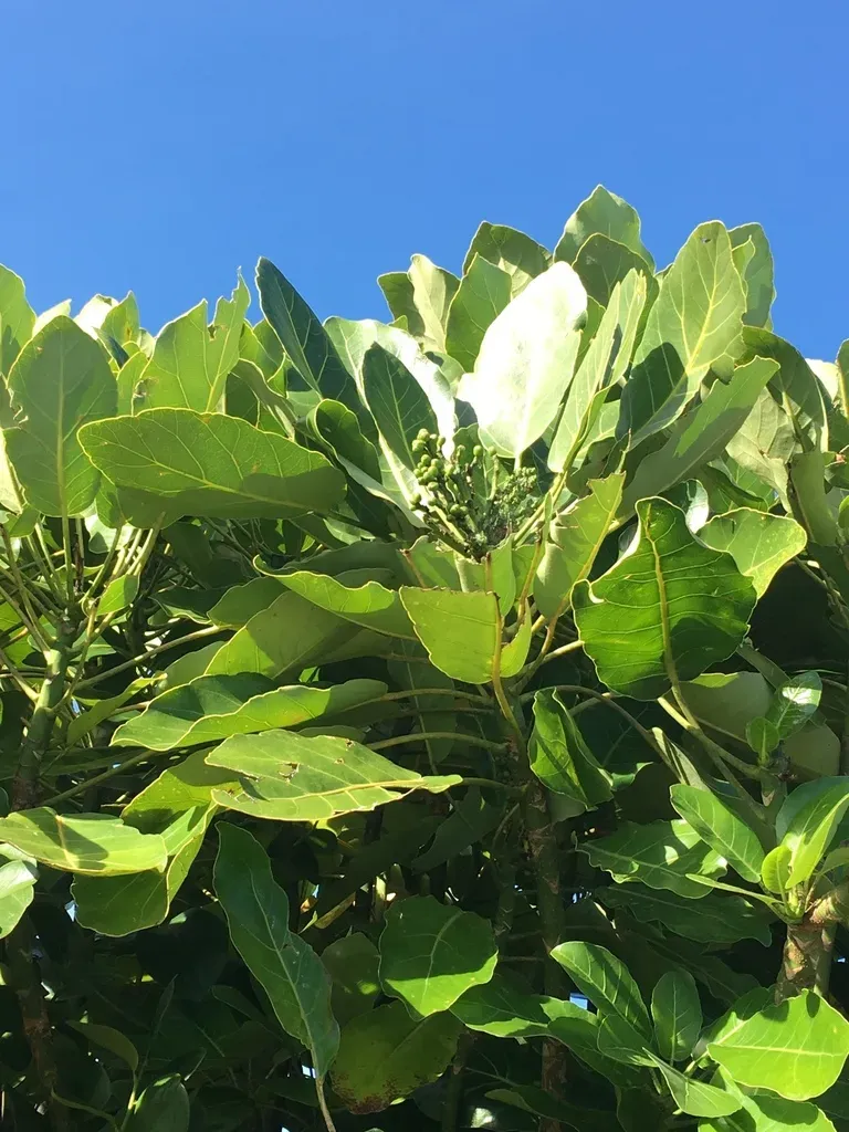 Meryta sinclairii is a large-leaved evergreen tree native to New Zealand, known for its striking glossy leaves and tropical appearance.