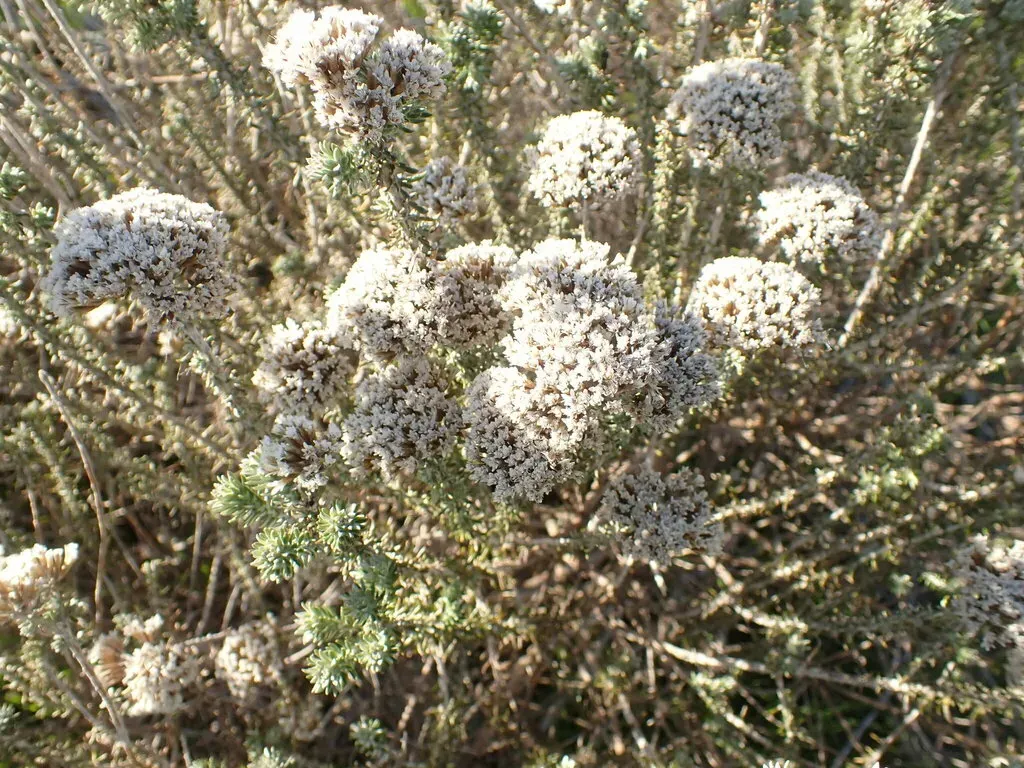 Metalasia muricata is a hardy, evergreen medium-sized shrub native to southern Africa, known for its greyish, rounded, sturdy form and honey-scented flowers.