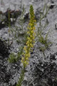 Microdon dubius is a leafy subshrub or shrub native to the Western Cape Province, South Africa, known for its long-tubed yellow flowers with maroon-tipped petals.