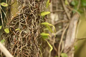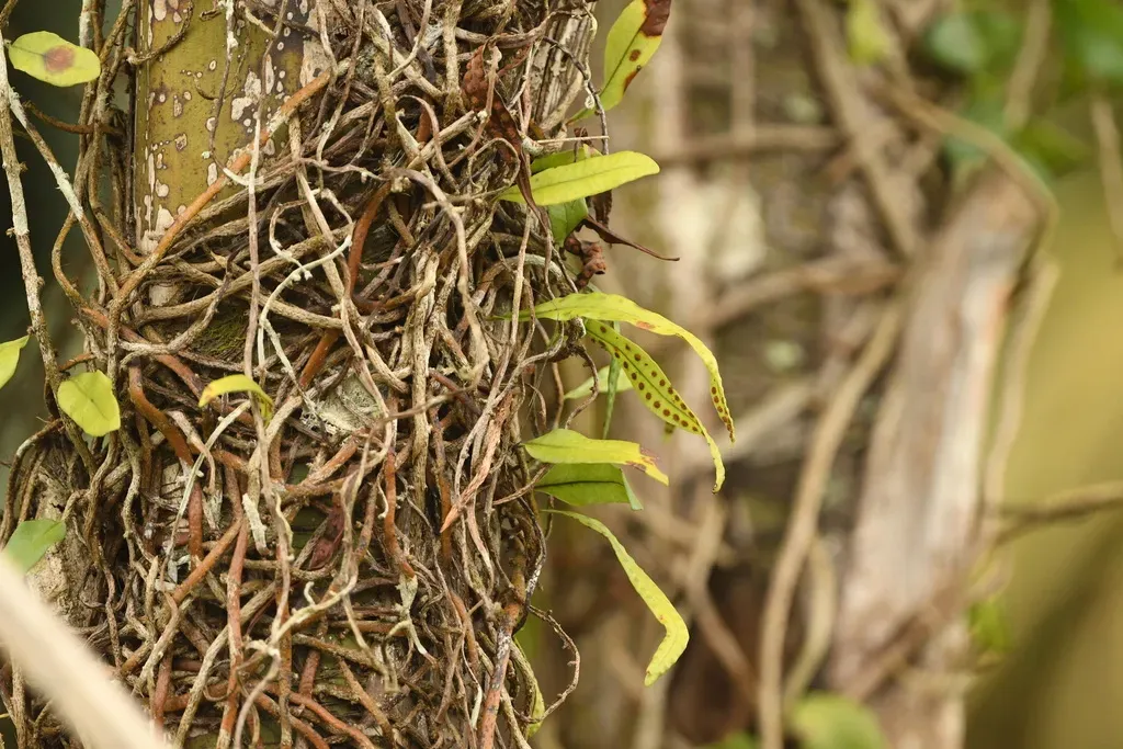 Microgramma lycopodioides is an epiphytic fern native to Mexico and Tropical America, known for its striking bright green lanceolate leaves with dark green maze-like venation.