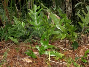 Microsorum pustulatum is an evergreen fern native to New Zealand and nearby regions, known for its distinctive glossy green foliage and adaptability as an epiphytic or lithophytic plant.
