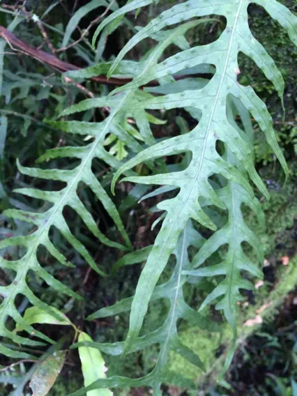 Microsorum scandens is a climbing or creeping fern species known for its wiry rhizomes and thin, divided fronds.