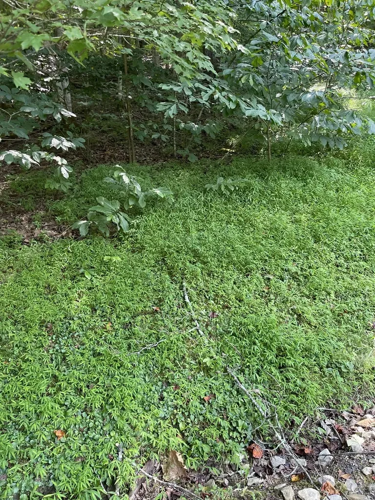 Japanese Stiltgrass (Microstegium Vimineum) is a annual grass in the Poaceae family with moderate care difficulty. It requires moderate watering and partial shade or full shade or dappled_shade light in USDA hardiness zones 5-9. This plant is safe for cats and dogs.