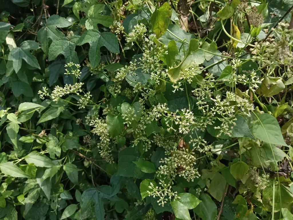 Mikania micrantha is a fast-growing perennial creeping vine known for its invasive nature in tropical regions.