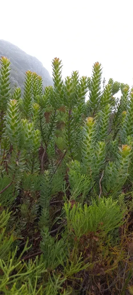 Mimetes hirtus is a single-stemmed, erect, much-branched shrub, 1.0-2.5 m in height with smooth, reddish bark.