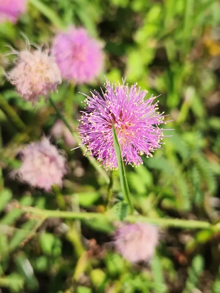 Mimosa quadrivalvis is a trailing or creeping perennial vine known for its sensitive leaves that fold when touched, and its prickly stems.