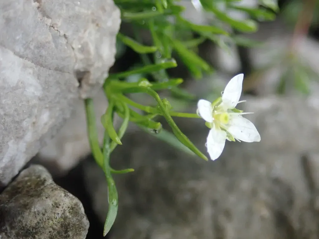 Moehringia muscosa is a perennial herbaceous plant native to the mountains of Central and Southern Europe, belonging to the Caryophyllaceae family.