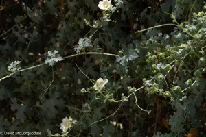 Momordica balsamina is a perennial climbing vine in the cucumber family, native to tropical Africa and tropical Asia, known for its lobed leaves and ovoid fruits.