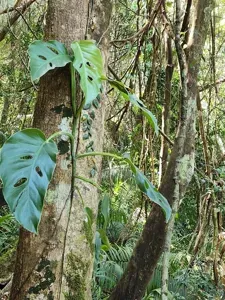 Monstera acuminata is an evergreen hemiepiphytic climber native to Central America and Mexico, characterized by smaller, pointed green leaves with distinctive holes.