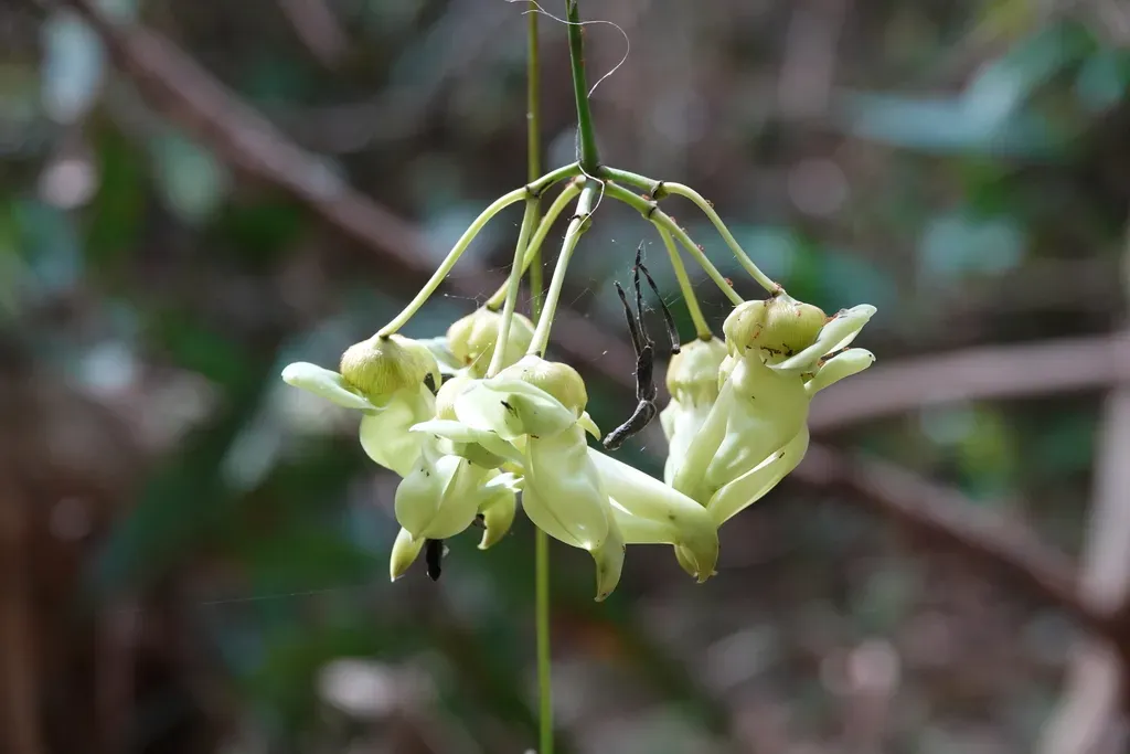 Mucuna gigantea is a large, woody climbing vine known for its long stems and distinctive seeds.