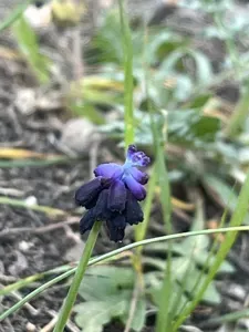 Dark Grape Hyacinth (Muscari Commutatum) is a perennial bulb in the Asparagaceae family with easy care difficulty. It requires moderate watering and full sun or partial shade light in USDA hardiness zones 4-9. This plant is toxic to cats and dogs — keep it out of reach of pets. It can be grown indoors.