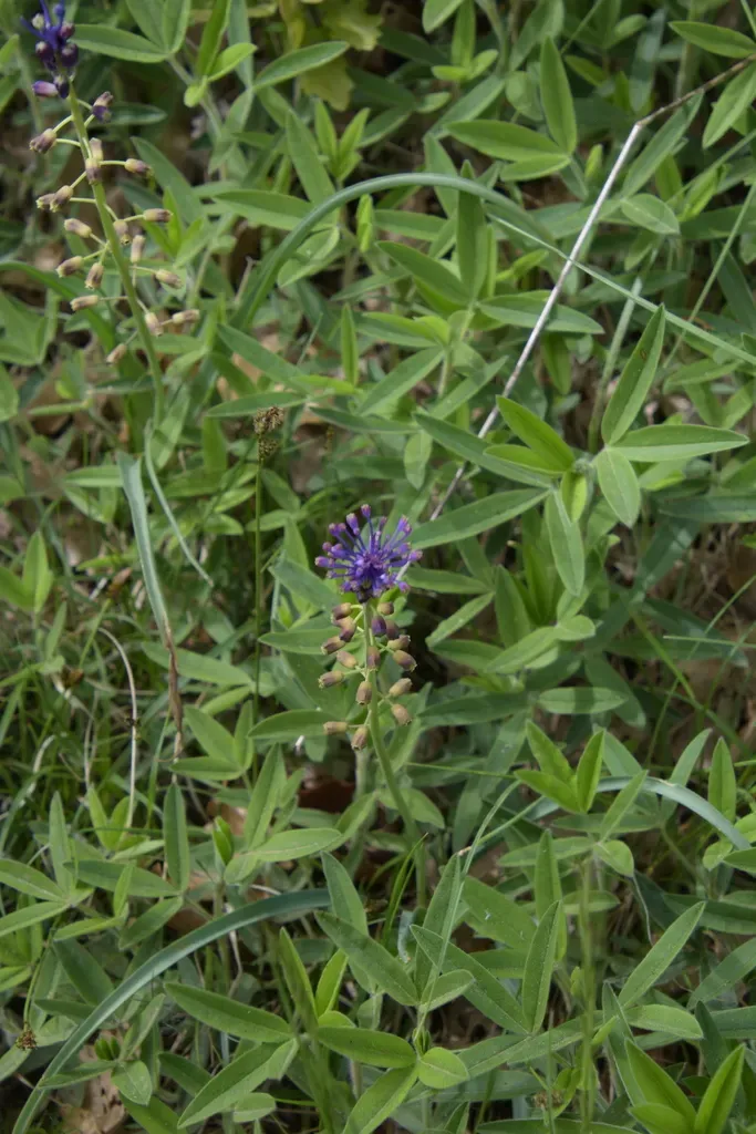 Muscari comosum, known as the tassel hyacinth, is a perennial bulbous plant with distinctive tufted flower spikes.