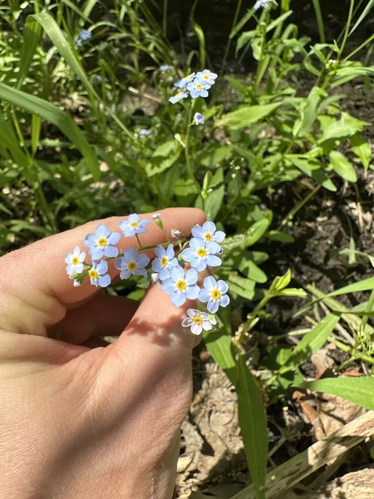 Myosotis laxa is a small, delicate perennial herb native to stream banks, pond shores, and seepages in North America and across the northern hemisphere. It is known for its small blue flowers with yellow centers.