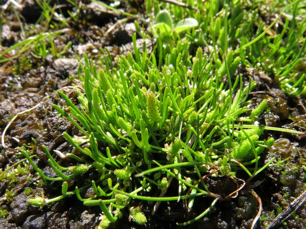 Myosurus minimus is a small annual herbaceous plant known for its distinctive tiny, mouse-tail shaped fruiting spike and delicate flowers.
