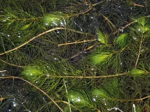 Myriophyllum quitense is a perennial aquatic herb known as Andean watermilfoil, found in slow-moving rivers and waterbodies, often forming dense mats.