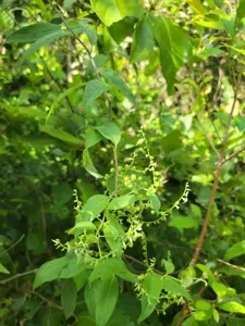 Myriopus volubilis is a perennial climbing vine native to tropical and subtropical America, known for its twining habit and yellowish tubular flowers.