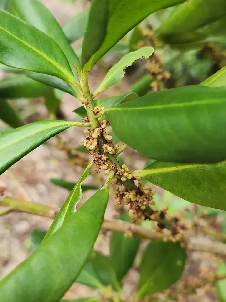 Myrsine cubana is a perennial shrub or small tree native to Florida and parts of the Caribbean, known for its glossy leaves and dense growth habit.
