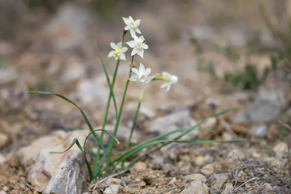 Narcissus dubius is a bulbous perennial plant known for its delicate white flowers, native to southern France and eastern Spain.