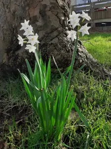 Narcissus papyraceus, commonly known as paperwhite, is a perennial bulbous plant native to the Mediterranean region, notable for its clusters of small, fragrant white flowers resembling paper.