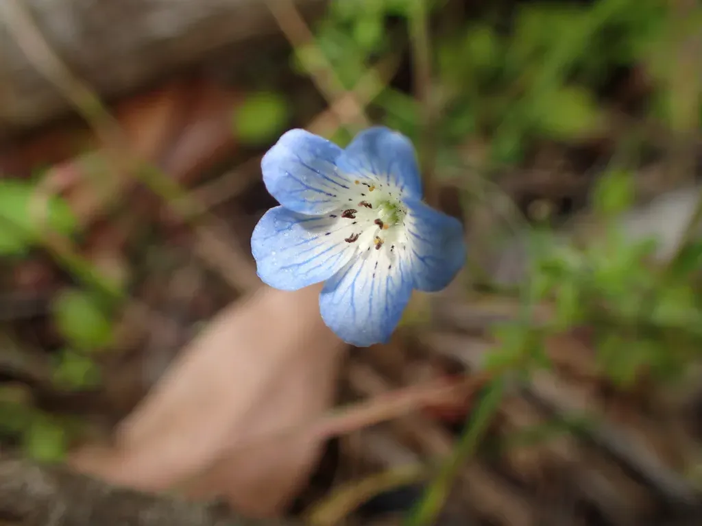 Nemophila menziesii is a low-growing annual wildflower native to western North America, best known for its vivid blue, bowl-shaped flowers with white centers.