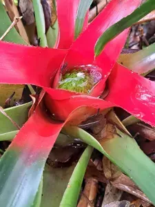 Blushing Bromeliad (Neoregelia Carolinae) is a perennial herb in the Bromeliaceae family with easy care difficulty. It requires moderate watering and partial shade or filtered_light light in USDA hardiness zones 10-12. This plant is safe for cats and dogs.